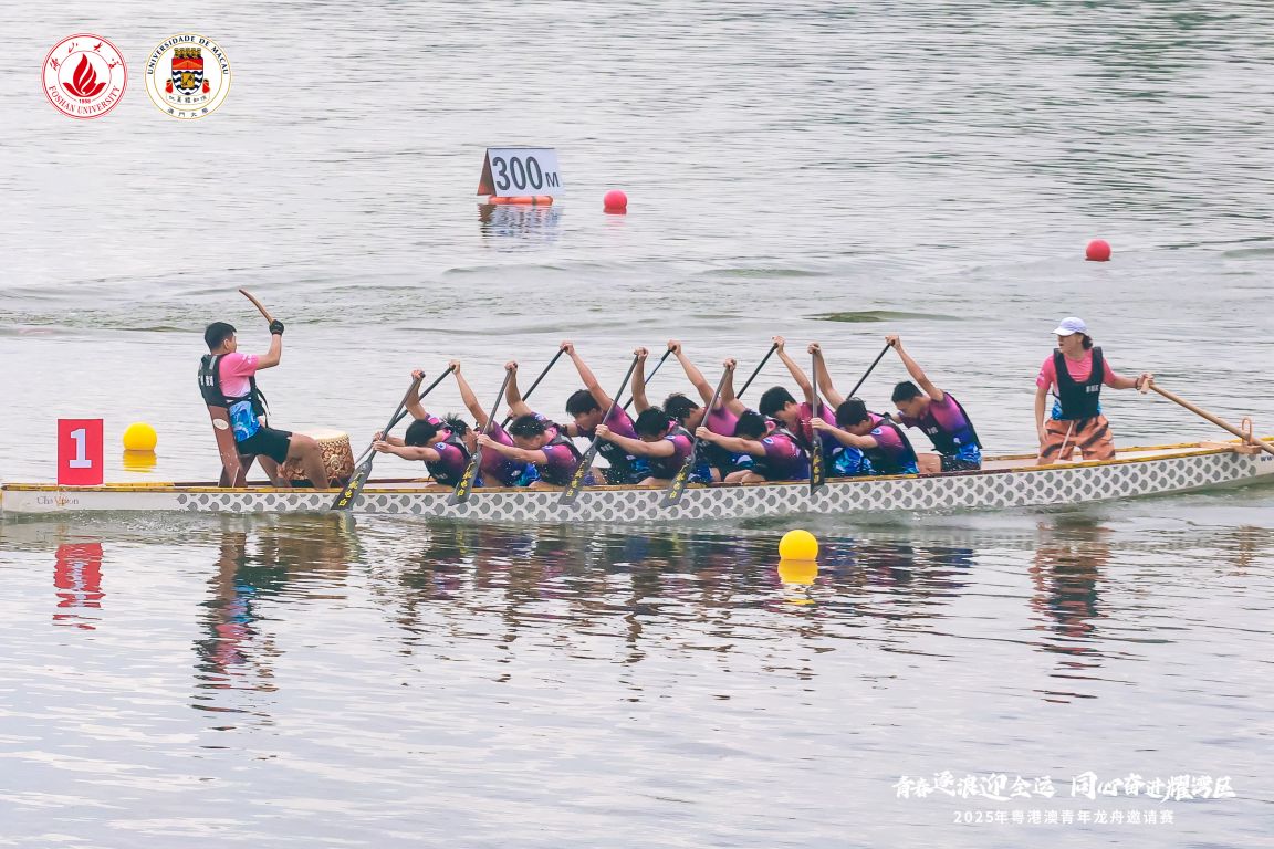本次赛事由佛山市委台港澳工作办公室、广东省龙舟协会、粤港澳大湾区体育教育与发展联盟联合举办,汇聚了华南师范大学、南方医科大学、佛山大学、香港浸会大学,澳门大学、澳门理工大学、澳门城市大学等14支高校龙舟队伍。本次龙舟邀请赛采用200米与500米直道赛双项积分制。在阵阵催人奋进的锣鼓声中,各支参赛龙舟队展开了激烈角逐。广航院龙舟队学生们毫不畏惧,化压力为动力,展现了惊人的耐力和爆发力,与邻道对手展开贴身较量,最终以200米第四名,500米第六名将总成绩第五名的荣誉收入囊中,为学校争得了荣誉,展现了广航青年蓬勃向上的朝气和锐意进取的勇气。