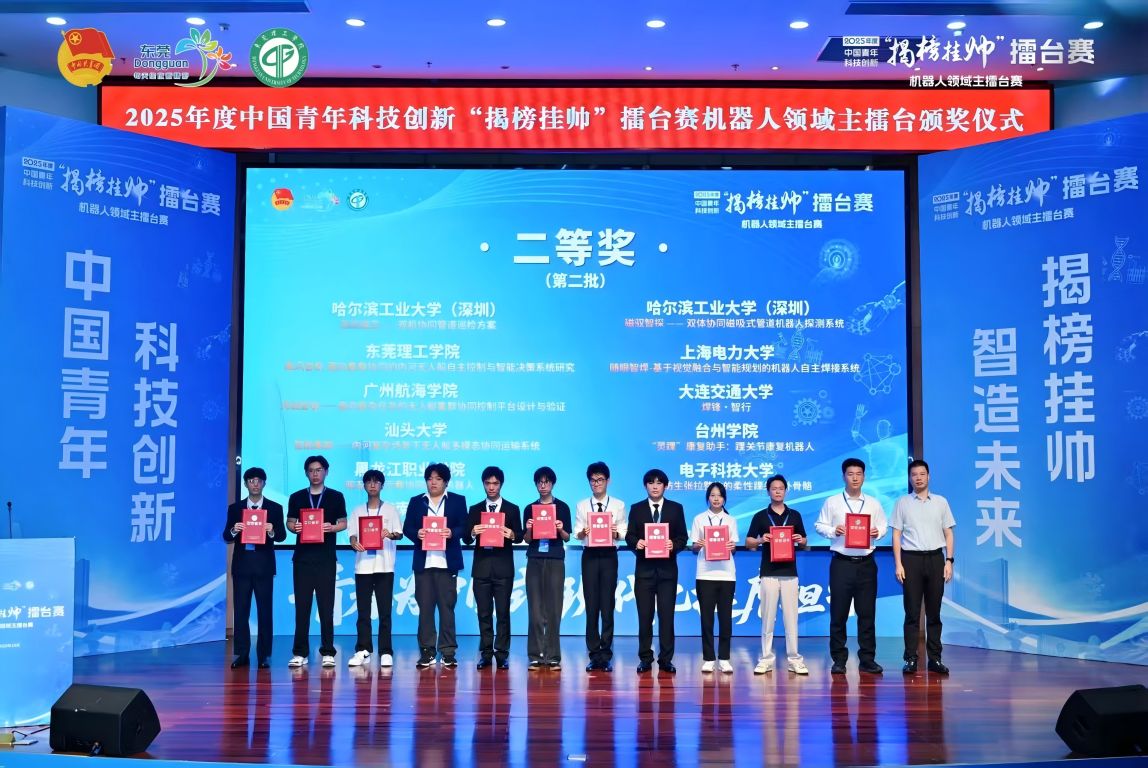 近日,2025年度中国青年科技创新“揭榜挂帅”擂台赛机器人领域主擂台赛终审赛在东莞理工学院圆满落幕。学校参赛团队作品《湾链智联——面向复杂任务的无人艇集群协同控制平台设计与验证》荣获全国二等奖,实现学校在该项国家级权威赛事中的新突破。