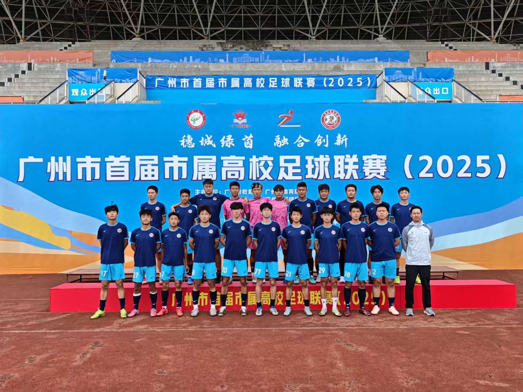 (广航院足球队在颁奖仪式中合影)