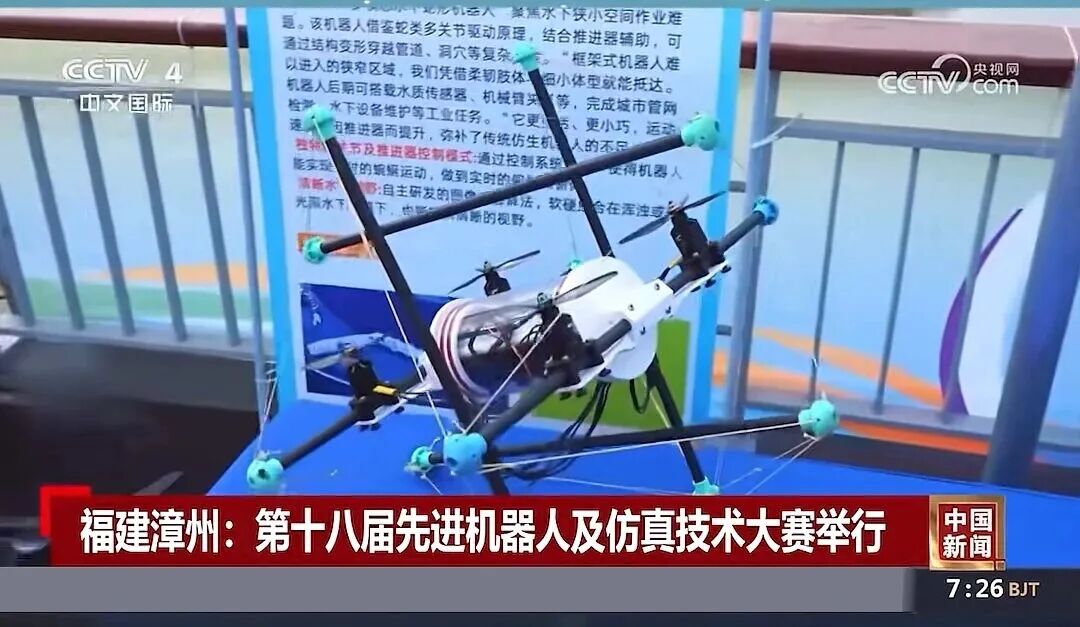 图2:中央电视台CCTV-4中文国际频道《中国新闻》对我校“三栖智巡”机器人进行报道
